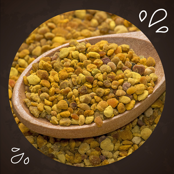 The bee pollen consists of 250 substances that include lipids (triglycerides, phospholipids), aminoacids, vitamins, flavonoids, simple sugars, carotenoids, vitamin C, and photochemical.